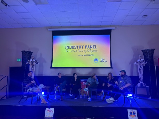 From left to right: Matt Beurois, YVFF director and panel moderator, Brent Huff, actor & director, Heather Grace Hancock, actress, Shane Stanley, director & producer, Shawn Huff, producer, Mike Mitchell, actor.